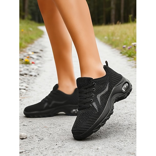 scarpe da ginnastica da donna in maglia rossa traspirante con plateau e cuscino d'aria – scarpe da corsa leggere con lacci per palestra, camminata e athleisure