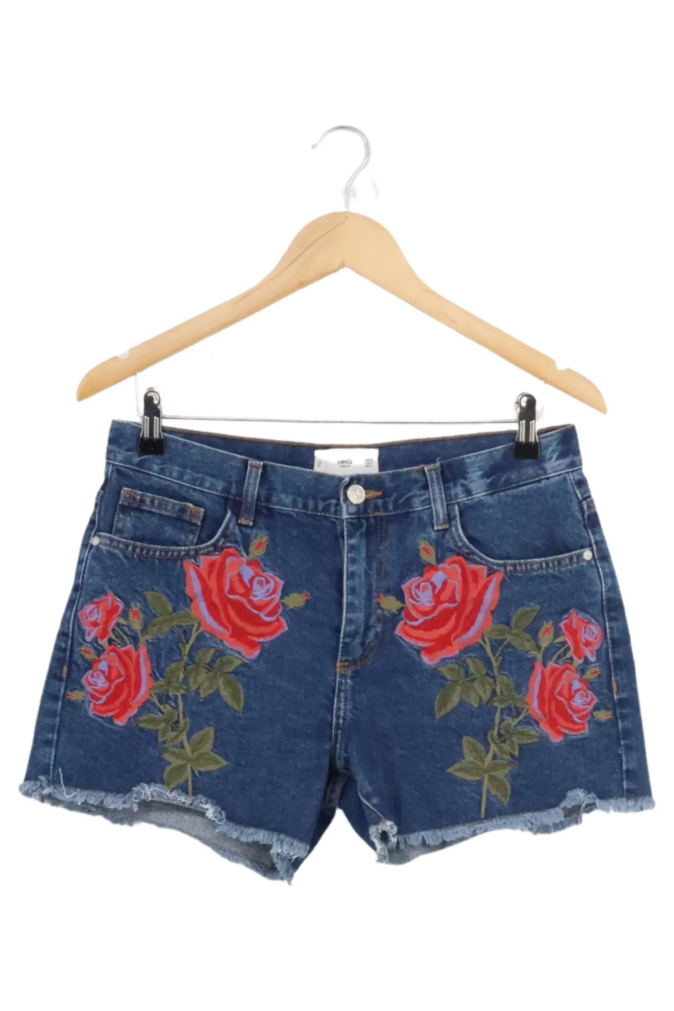MANGO Jeans Shorts Damen Gr. 38 Mehrfarbig Rosen Vintage