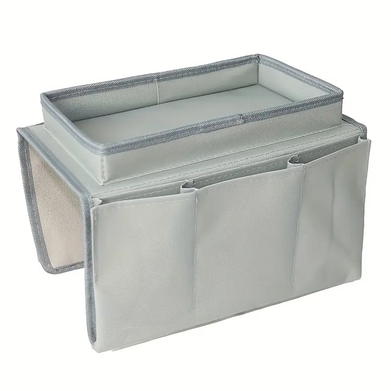 Sofa Armrest Storage Box with Built-in Tray - Multifunctional Storage Compartment Suitable for Remote Control Magazines Snacks and Beverages - Sturdy Fabric Side Pockets Dedicated for Living Room