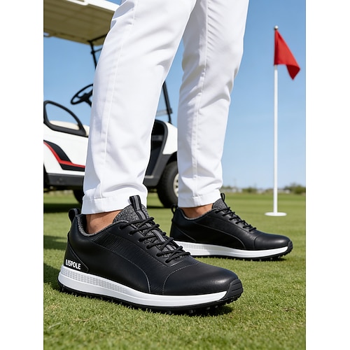 scarpe da golf da uomo bianche e nere con design ventilato, ideali per campi da golf e sport all'aria aperta