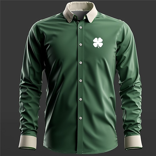 A quadrifoglio Moda Casual Per uomo Camicie stampate Per eventi Da mare Festival Primavera estate Collo ripiegabile Manica lunga Verde scuro, Viola, Verde S, M, L Tessuto elasticizzato a 4 vie Camicia