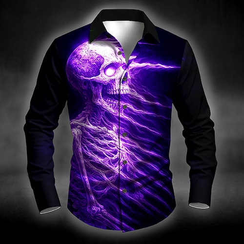 Camicia da uomo Costumi Teschio Fiamma Camicia Button Up Maniche Lunghe Stile Punk Gotico Scuro Attività Outdoor Vacanza Estate Primavera Colletto Turndown Camicie Stampate 3D Blu Viola Arancio Verde
