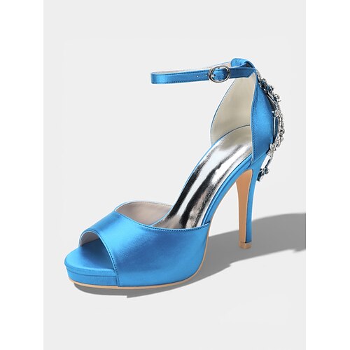 sandali da donna con tacco a blocco in raso blu reale e cinturini in strass, eleganti tacchi a spillo con cinturino alla caviglia per feste e matrimoni eventi serali