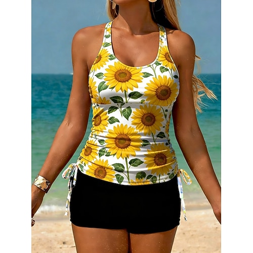 Per donna Standard Costume da bagno Tankini 2 pezzi Floreale Tropicale Asciugatura Rapida Elastico Senza Maniche Costume da Bagno Costume da bagno Surf Spiaggia Nuoto Estate