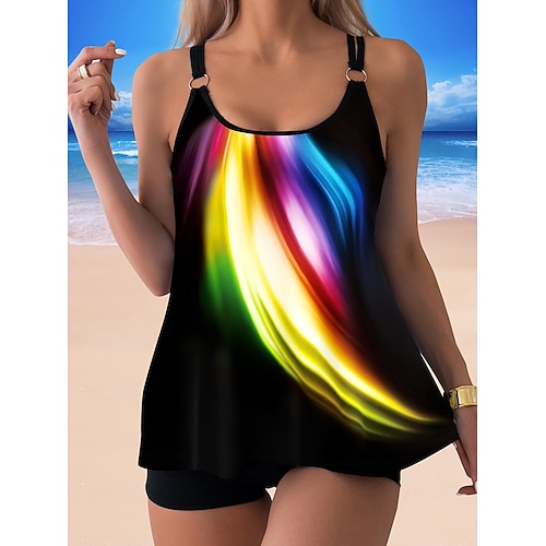 Costume da bagno due pezzi tankini da donna Briefs Attivo Vacanza Ombre Grafica U Neck Senza maniche