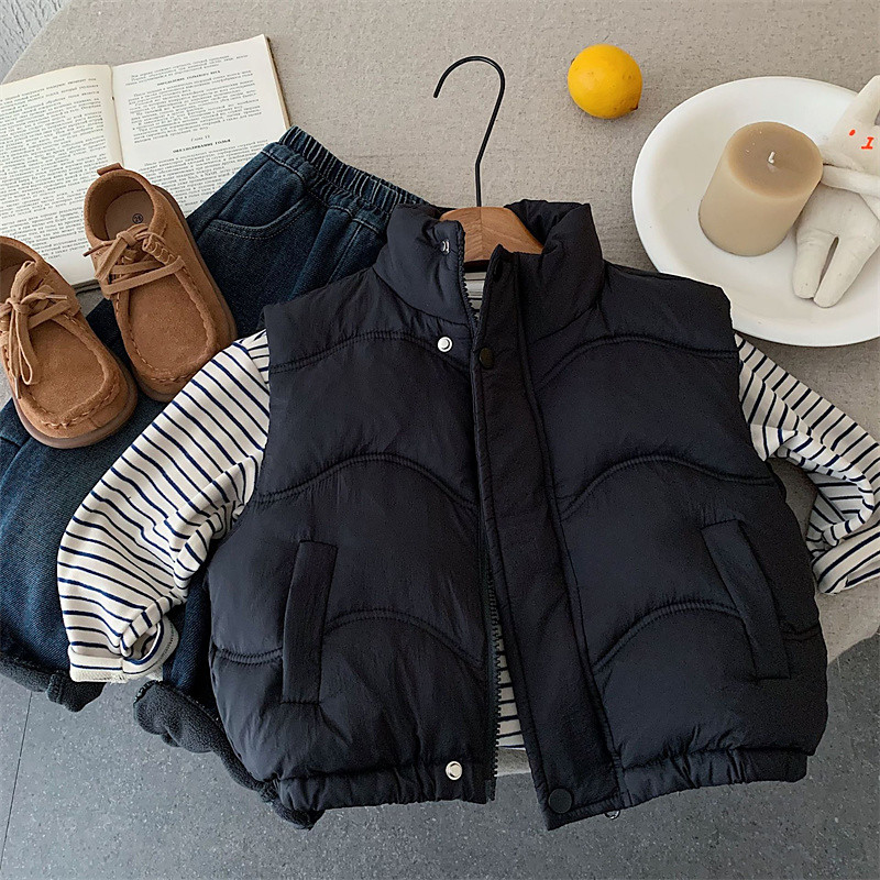 Kids Boys' Vest Coat Outerwear Solid Color Sleeveless Keep Warm Coat Outdoor Fashion Daily Black Khaki Gray Fall Winter 4 years