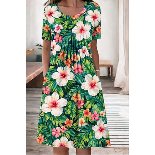 Per donna Abito Midi Vestito T-Shirt Abito a trapezio Abito Estivo Vacanza Casual Spiaggia Data Abito Estivo Vestibilità regolare Floreale Grafico Manica Corta Girocollo Blu Bianco Rosa Azzurro cielo