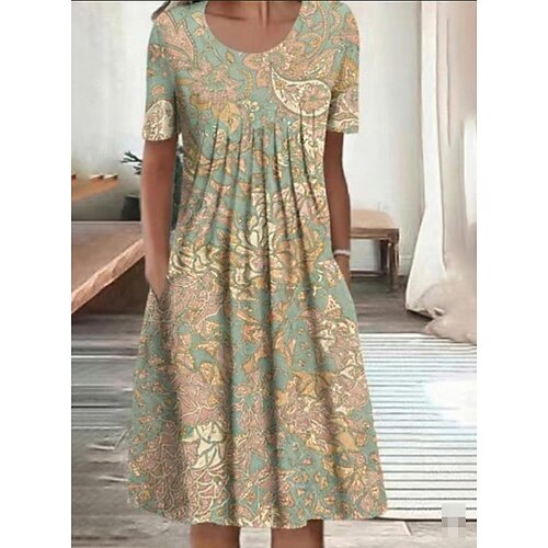 Per donna Abito Midi Vestito Casual Abito Estivo Moda Moderno Quotidiano Spiaggia Weekend Vestibilità regolare Fiore Manica Corta Girocollo Bianco Rosa Viola Marrone Estate Primavera Autunno