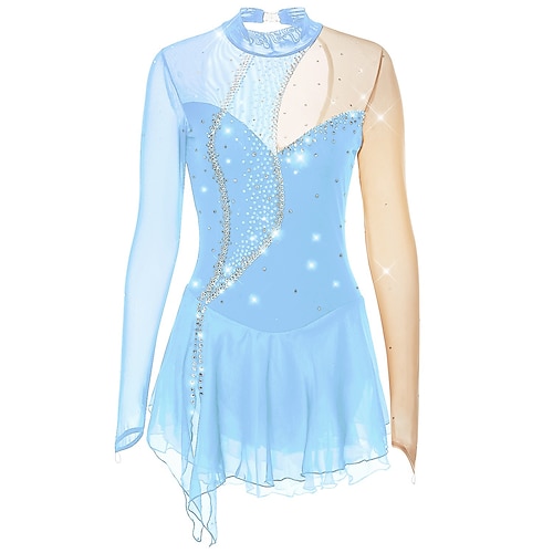 Vestito da pattinaggio artistico Per donna Da ragazza Pattinaggio sul ghiaccio Vestiti Bianco / Bianco Giallo e giallo Viola scuro Orlo asimmetrico Retato Elevata elasticità Competizione Vestiti da