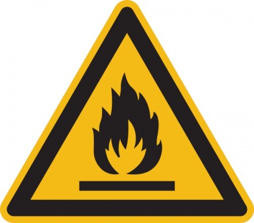 König Werbeanlagen Warnschild, Warnung vor feuergefährlichen Stoffen W021 - ASR A1.3 (DIN EN ISO 7010) - 200 mm Folie selbstklebend