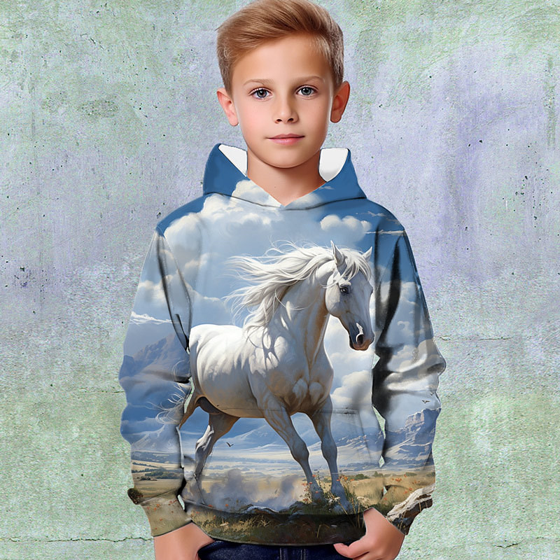 Boys 3D Animal Horse Hoodie Long Sleeve 3D Print Fall Winter Active Sports Fashion Kids 3-13 Years Outdoor Daily Indoor Regular Fit