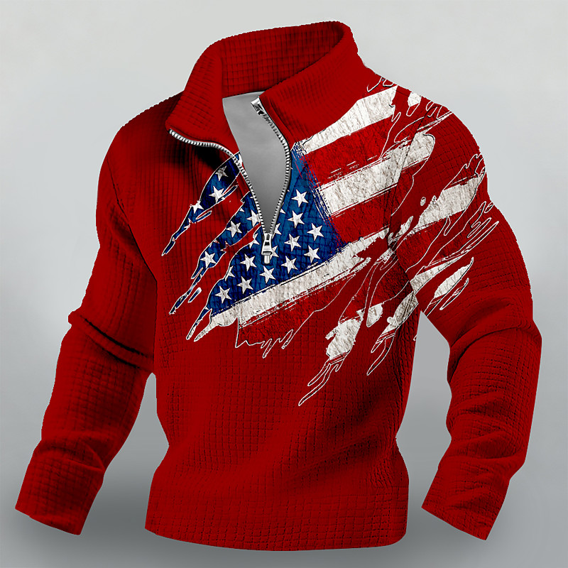 America's 250th Anniversary Men's American US Flag Waffle Sweatshirt Fashion Daily Classic Casual Stand Collar Quarter Zip Home Outdoor Office Work Blue Black White Red Zip Up Fall Winter Designer S