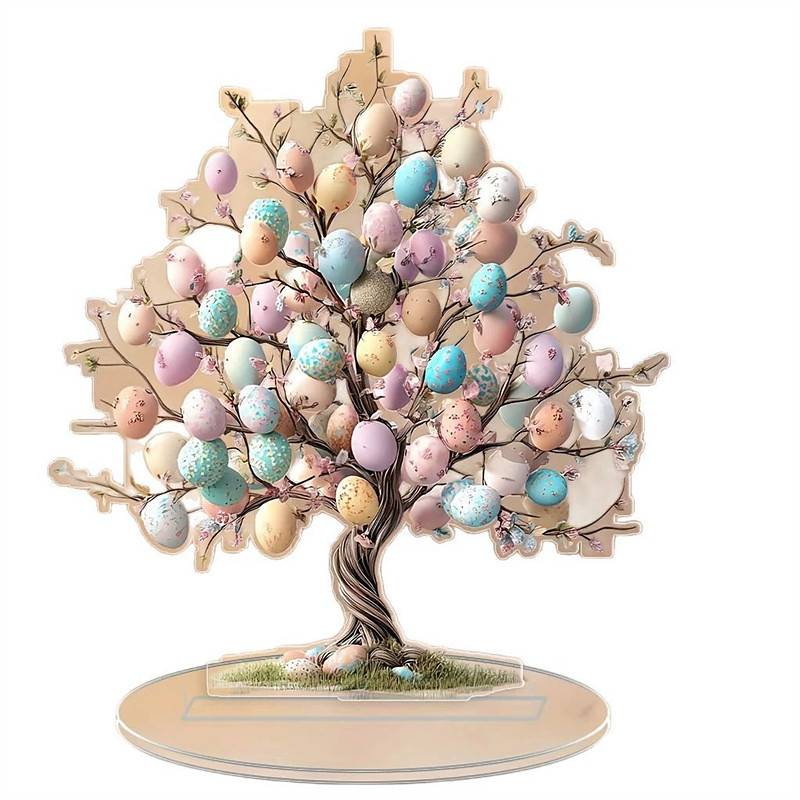 Easter Eggs Tree Decor Tabletop Sign 2D Crafts Collectible Housewarming Gift Ornament for Countertop Fireplace Dining Room