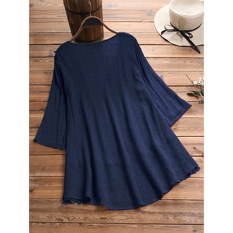Women's Lace Shirt Blouse Eyelet top WhiteLaceShirt Tribal Casual 3/4 Length Sleeve V Neck Regular Tops Vacation Daily Beach Lace Flowing tunic Navy Watermelon Red White Green Spring Fall