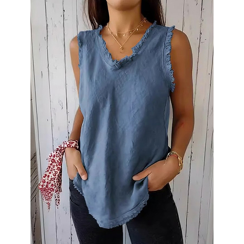 Women's Blouse Solid Color Plain Elegant Stylish Classic Sleeveless 3/4 Length Sleeve V Neck Long Tops Daily Lace Blue White Pink Summer Spring