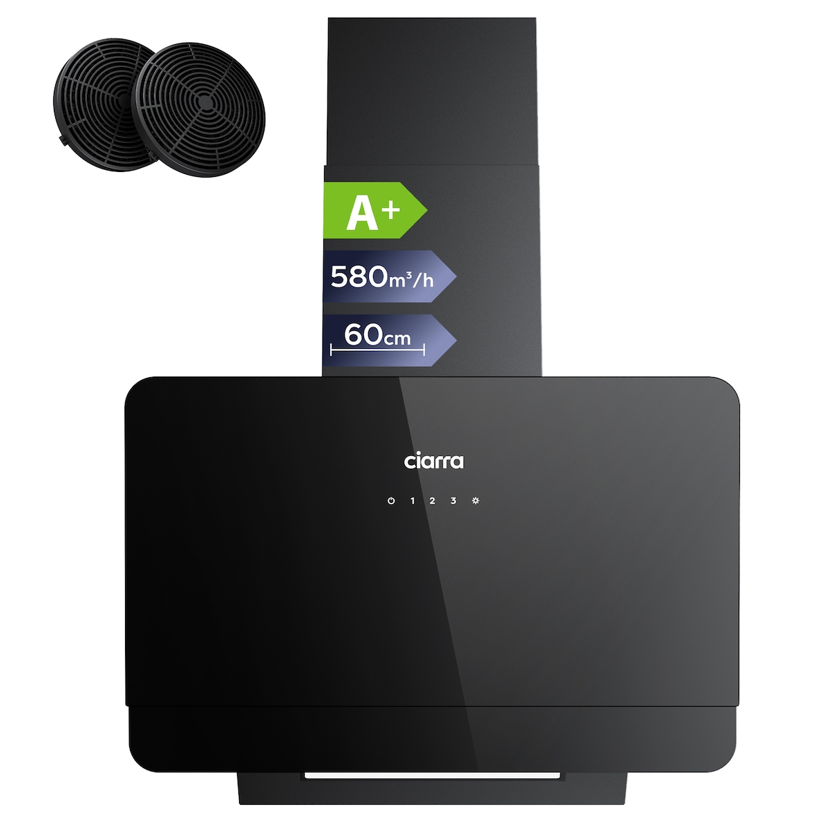 CIARRA Kopffreihaube, Schräge Dunstabzugshaube, A+ Max. 580m³/h 60cm 3 Stufen, Umluft & Abluft VM6765CS