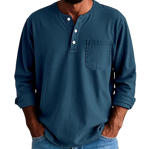 Per uomo Maglia Henley Maglietta Camicia 100% cotone lavaggio acido Top Henley Manica Lunga Tinta unica Semplice Vintage Moda Retrò Bottoni Henley All'aperto Casuale Quotidiano Estate Primavera Tutte
