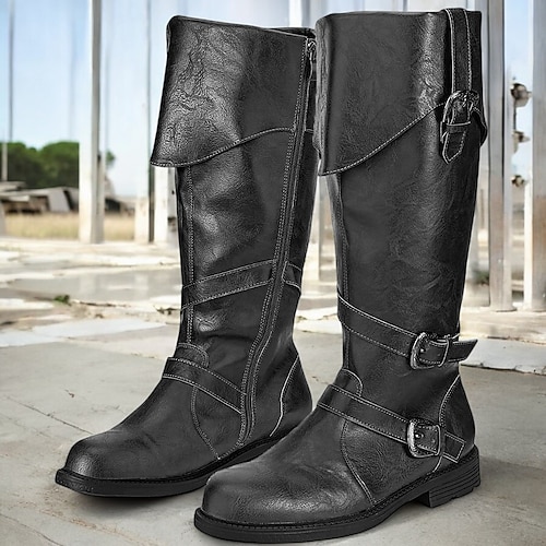 stivali medievali da uomo in similpelle marrone – design classico con fibbia e cerniera, perfetti per rievocazioni storiche, cosplay ed eventi a tema