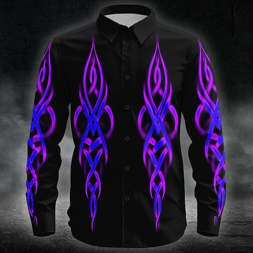 Herren Tribal Neon Glow Kostüme Hemd Knopfhemd Langarm Dunkel Punk Gothic Stil Outdoor Feiertag Sommer Frühling Umgeschlagen 3D Druck Kragenhemden Blau Lila Grün