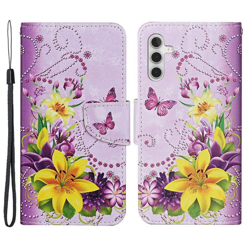 Samsung Galaxy A55 5G Plånboksfodral Konstläder Mönster - Blommor / Fjärilar