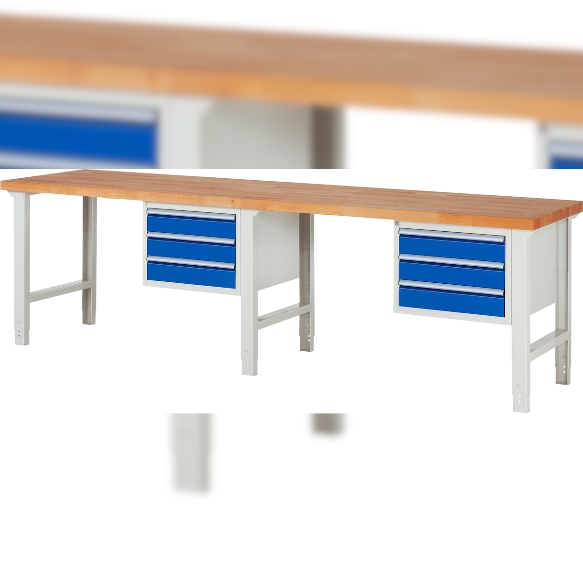 eurokraft pro Werkbank, Baukastensystem Serie 7000, 2 Hängeschubladen, BxT 2500 x 900 mm