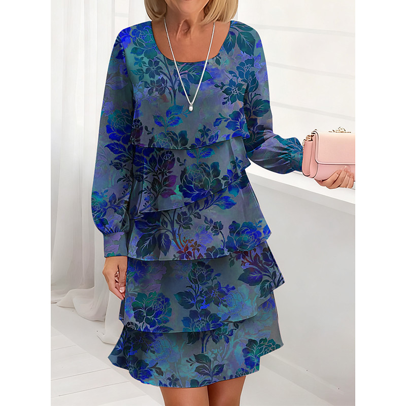 Women's Midi Dress A Line Dress Casual Daily Regular Fit Floral Graphic Long Sleeve Crew Neck Red Blue Purple Green Fall Winter