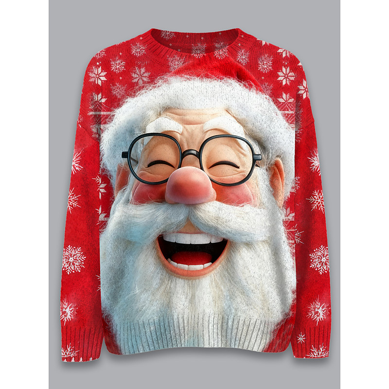 Ugly Sweater Christmas Women's Sweater Fashion Casual Graphic Crew Neck Knitted Long Sleeve Regular Tops Knit Work Red Fall Winter