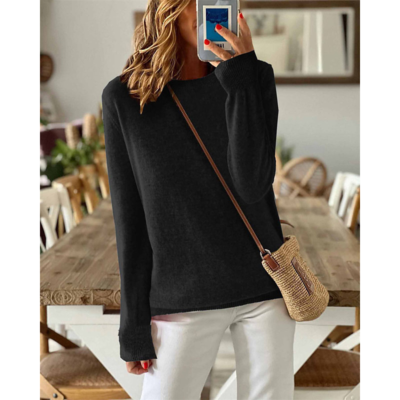 Women's Sweater Pullover Elegant Fashion Cute Solid Color Crew Neck Knitted Long Sleeve Regular Tops Knit Outdoor Home Work Black White Fall Winter