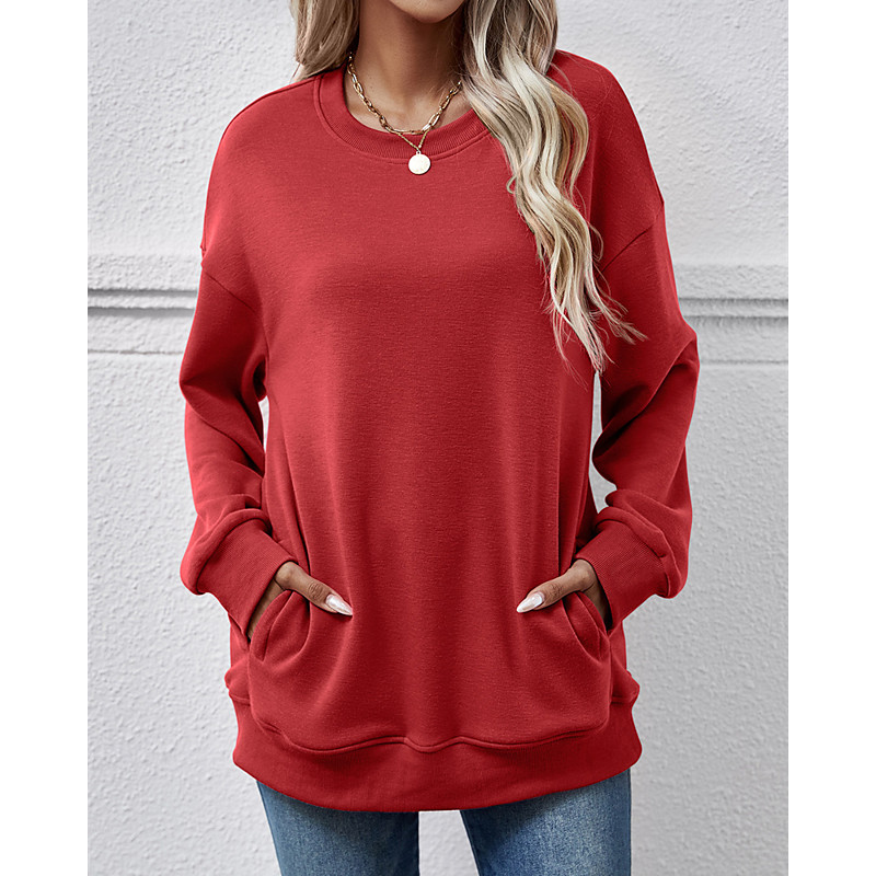 Women's Sweatshirt Solid Color Elegant Daily Casual Long Sleeve Crew Neck V Neck Regular Tops Daily Holiday Pocket Maroon White Pink Blue Spring Fall Winter Spring, Fall, Winter, Summer