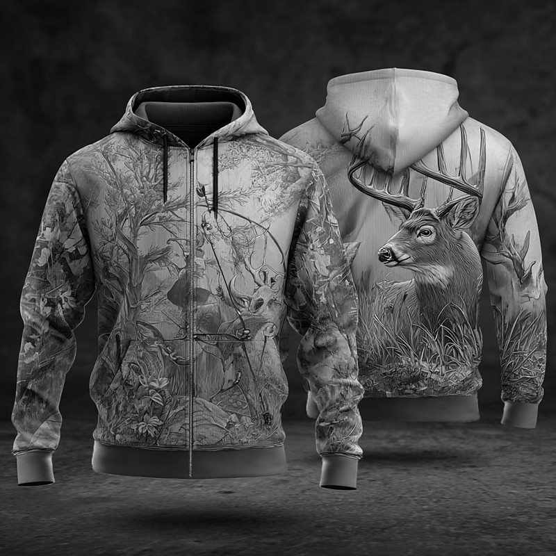 Men's Camo Deer Hoodies Fashion Daily Western Cowboy Long Sleeve Hooded Vacation Hunting Black Brown Khaki Drawstring Zipper Fall Winter Designer S M L XL XXL XXXL