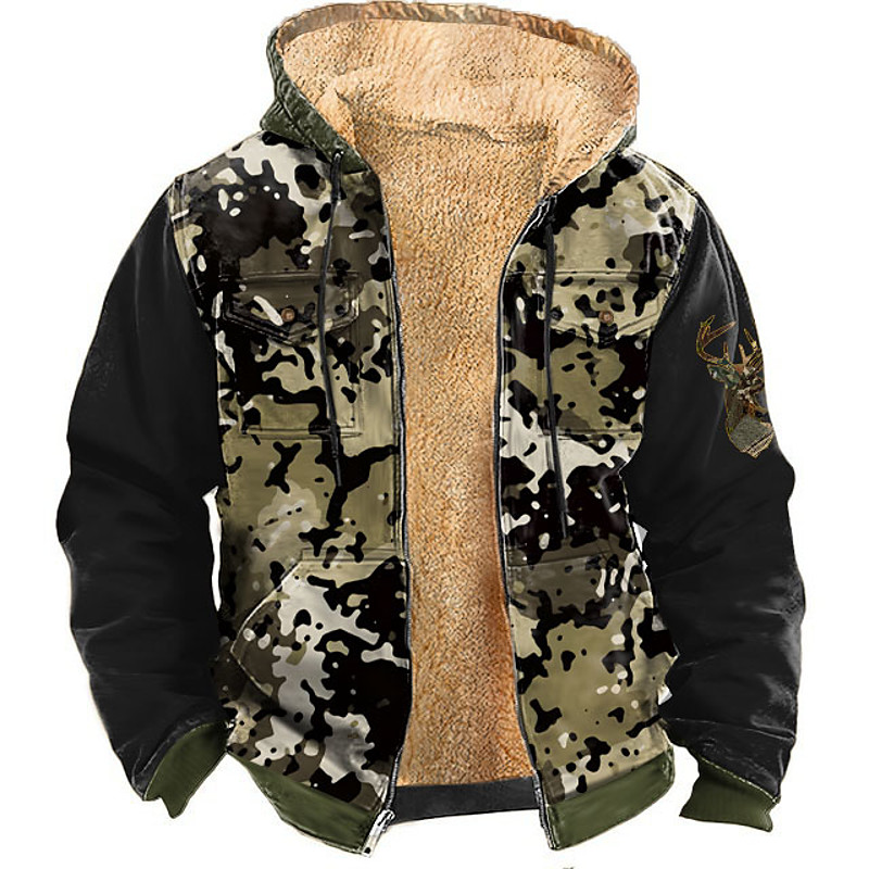 Men's Camo Camouflage Deer Fleece Hoodie Jacket Sweatshirt Fashion Cool Daily Vintage Retro Long Sleeve Hooded Hunting Green Khaki Army Green Zipper Pocket Fall Winter Designer S M L XL XXL XXXL