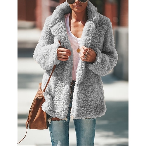 Per donna Cappotto Invernale Giacca Invernale Caldo Leggero Aperturaanteriore Elegante Carino Quotidiano Pelliccia Tinta unica Casa Capodanno Streetwear Casuale Regolare Bavero classico Vestibilit