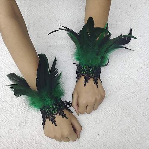 Accessori Samba del Carnevale 2026 Rio Carnevale Cuffie per Polso in Piume Rosse con Pizzo Nero per Donne Costume per Performance al Festival del Brasile