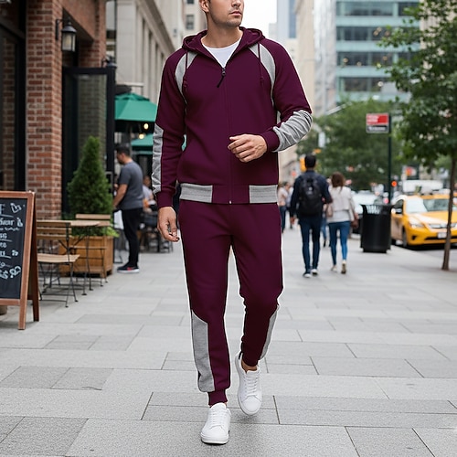 Per uomo Tuta da Ginnastica Set di abiti Set di felpe con cappuccio Felpa con Cappuccio All'aperto Quotidiano Sportivo Coulisse Con zip Tasca Blocco di colori Rosso bordeaux Nero Bianco Abbigliamento