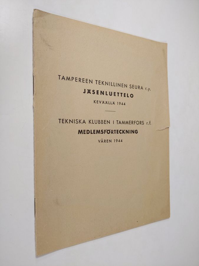 Tampereen teknillinen seura r.y. : jäsenluettelo keväällä 1944 = Tekniska klubben i tammerfors r.f. : medlemsförteckning våren 1944
