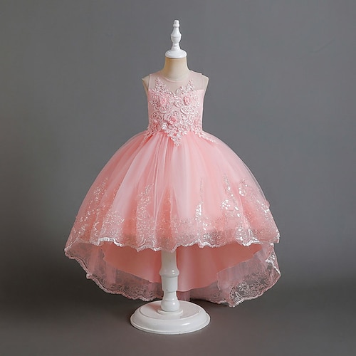 Blumenmädchenkleid Mädchen Formelle Kleidung Hochzeitskleidung Party Hochzeit Formell Mode Niedlich Prinzessin Patchwork Netz Blumen Ärmellos Rundhalsausschnitt Rosa Rote Ab 4 Jahren