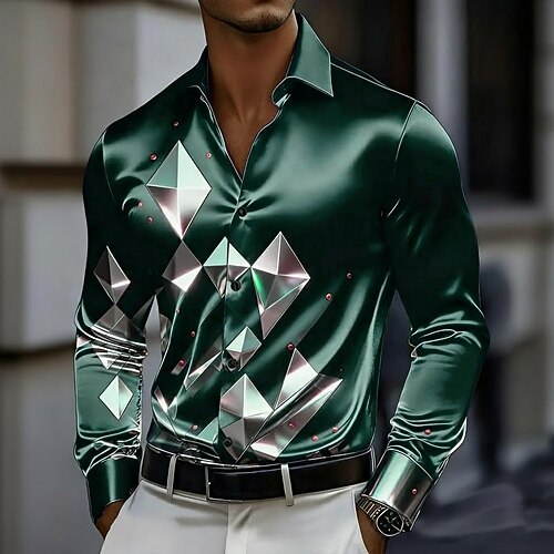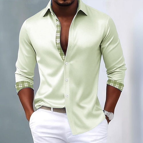 Herren Karo / Karomuster Geometrisches Muster Hemd Satinhemd Kleidhemd Langarm Business-Casual Urlaub Alltagskleidung Sommer Frühling Herbst Umlegekragen 3D-Druck Hemden mit Knopfleiste Hellgrün Rosa