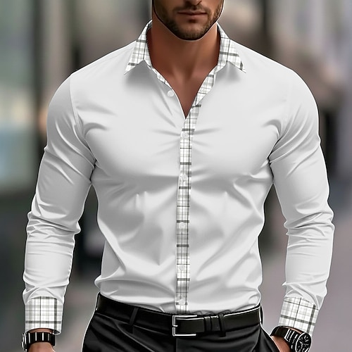 Herren Geometrisch Schachbrett Karo / Karomuster Hemd Knopfhemd Lässiges Hemd Langarm Modisch lässig Formell Urlaub Alltagskleidung Sommer Frühling Umlegekragen 3D-Druck Hemden mit Kragen Schwarz Weiß