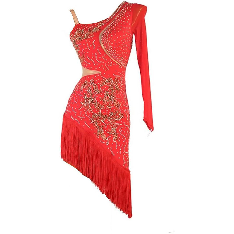Latin Dance Dress Rhinestone Tassel Women's Performance Training Long Sleeve High Spandex Tulle