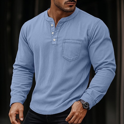 Per uomo Maglia Henley Manica Lunga Henley Primavera Autunno Tutte le stagioni Vintage Retrò Vintage Casual Stile Vintage Lavato Casuale Nero Blu scuro Grigio Maglietta Top per Uomo