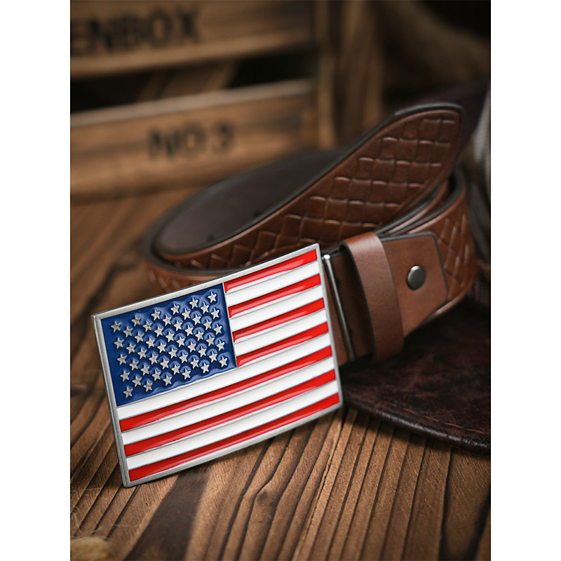 Men's Embossed Faux Leather Belt with American Flag Buckle, Multiple Colors, Patriotic Casual Style for Independence Day and U.S. 250th Anniversary Celebrations