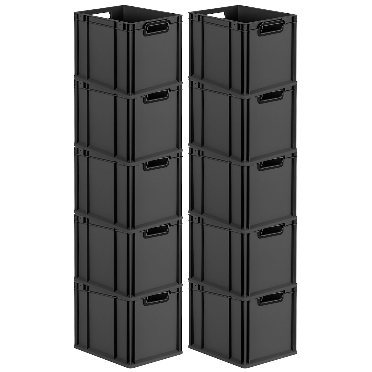 PROREGAL SparSet 10x Eurobox NextGen Color, HxBxT 32x30x40cm, 30 Liter, Griffe schwarz offen, Schwarz, Eurobehälter, Transportbehälter