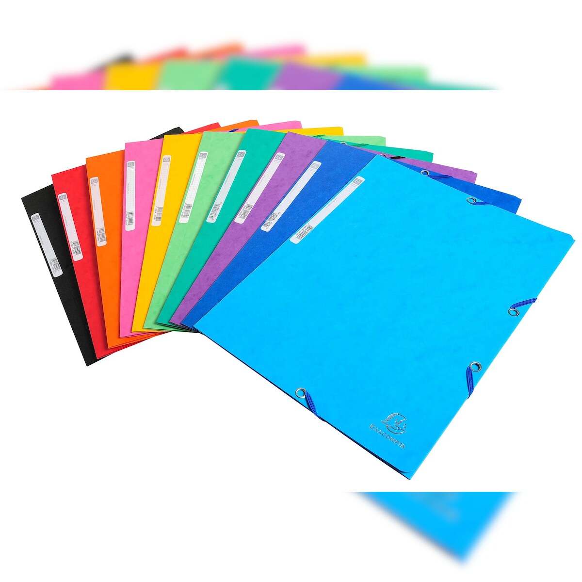 Exacompta 55500E 50x Sammelmappe mit Gummizug, 3 Klappen und Etikett aus Colorspan-Karton 400g für Format DIN A4 - Farben sortiert