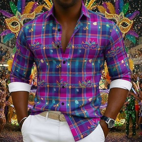 Mardi-Gras-Hemd für Herren – farbenfrohes Karnevalshemd