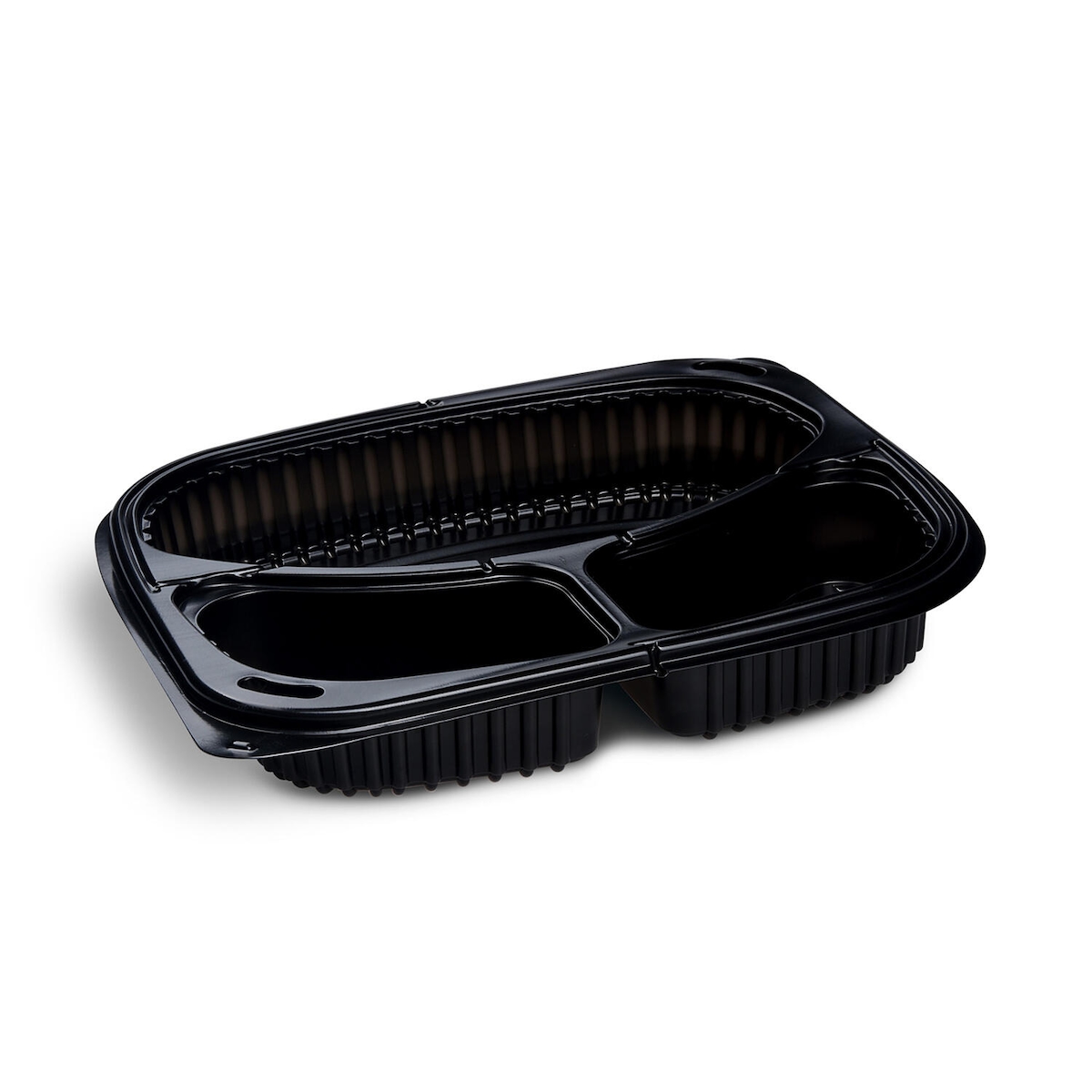 VEPATIM 100x Mehrweg Menüschalen 3-geteilt 240 x 210 x 40 mm Mikrowellengeeignet schwarz 1000ml