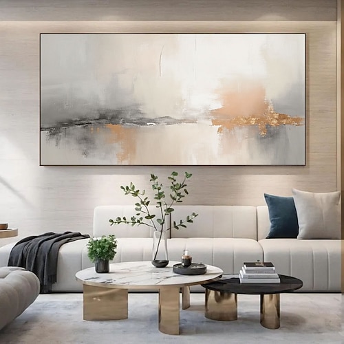 Handgefertigtes, handgemaltes Ölgemälde für die Wand, beige und schwarz, abstraktes Ölgemälde, Original-Acrylgemälde auf Leinwand, moderne minimalistische Kunst für Schlafzimmerdekoration, gerollte