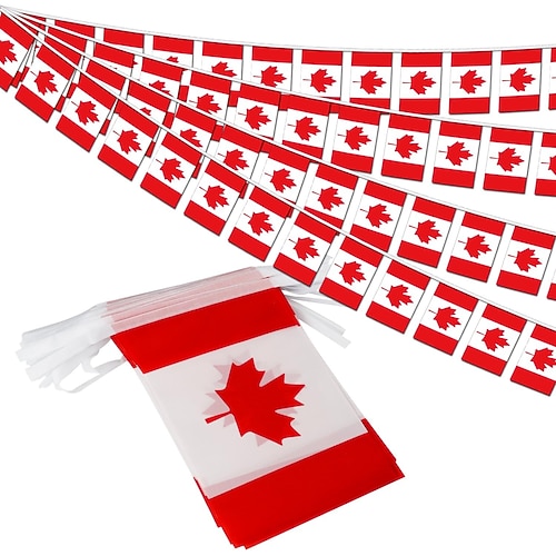 Wimpelkette mit kanadischen Flaggen für die Fußball-Weltmeisterschaft (50 Flaggen), 14 Meter lange Mini-Wimpelkette mit kanadischen Flaggen für Dekorationen im ländlichen Raum, Schulen, Partys und