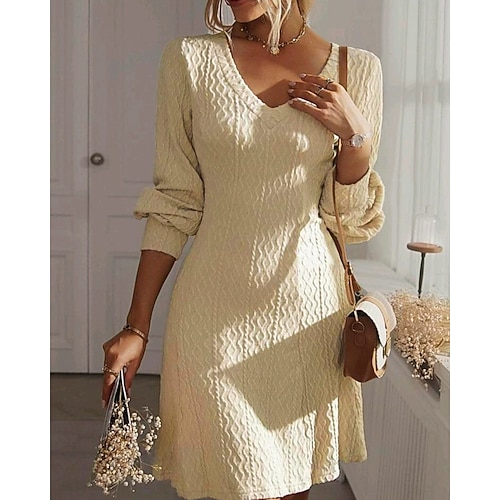 Per donna Mini Abito Vestito Casual Moda Classico Moderno All'aperto Vacanza Ferie Vestibilità regolare Semplice Manica Lunga Scollo a V Nero Rosa Albicocca Estate