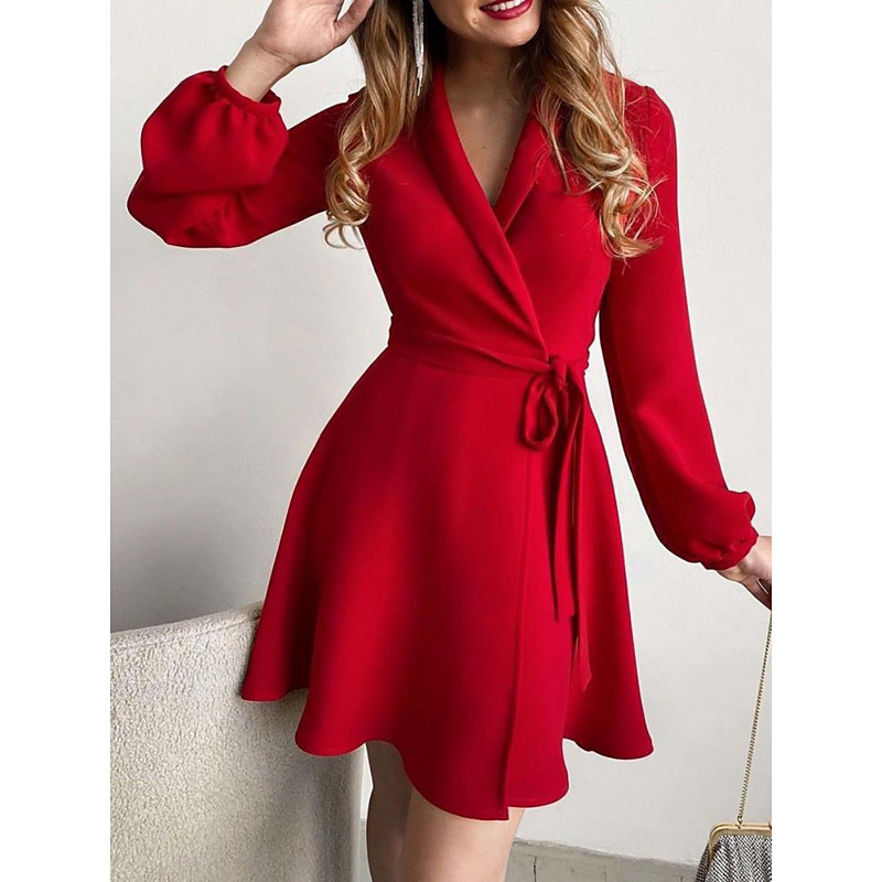 Women's Mini Dress A Line Dress Casual Daily Regular Fit Plain Long Sleeve V Neck Black Spring Fall