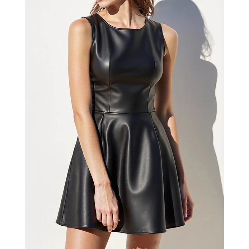 Women's Mini Dress Leather Dress Fashion Modern Daily Office Vacation Regular Fit Plain Sleeveless Crew Neck Black Spring Fall Winter